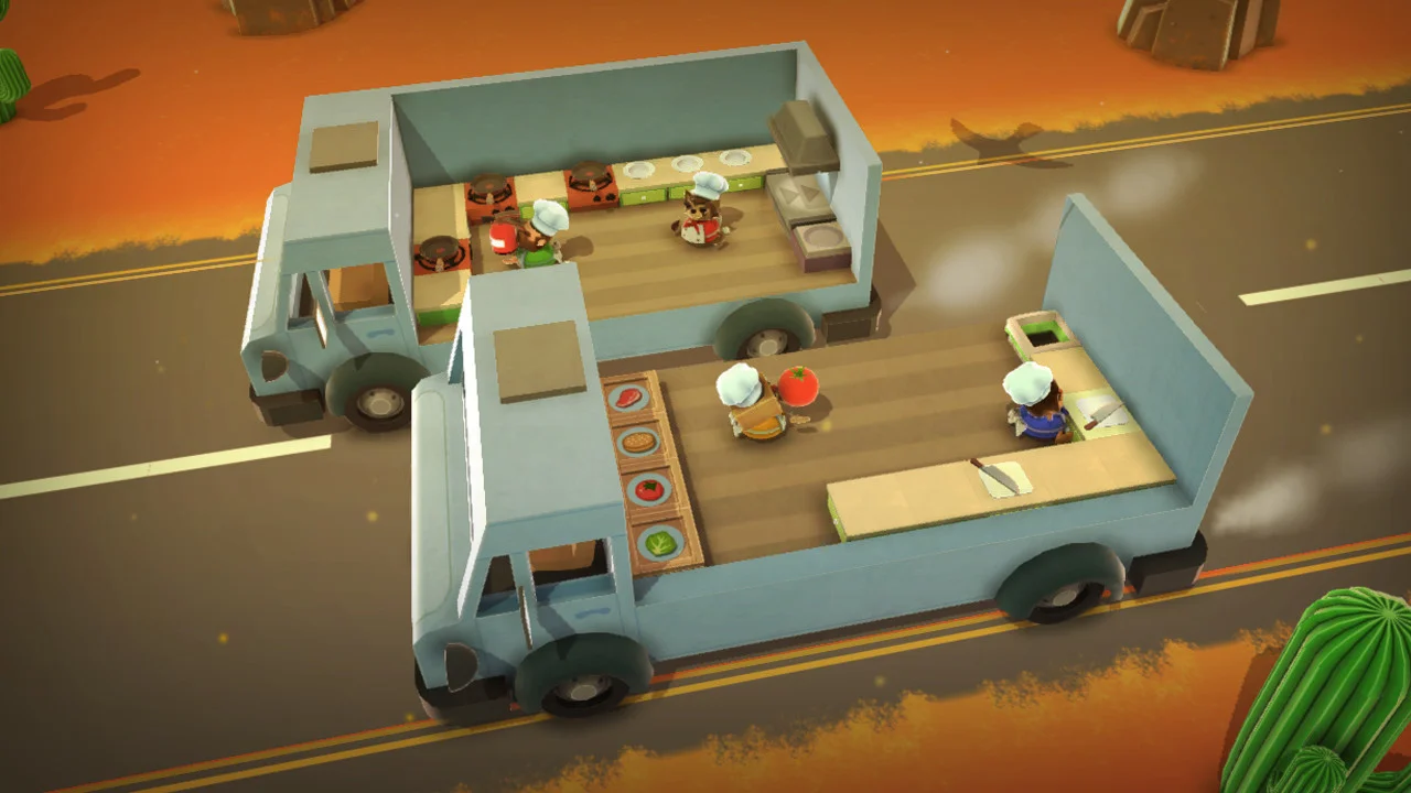 Overcooked is a cooperative game where gamers run a kitchen. Players chop, cook, serve, and then clean dishes. Sounds simple, but things get complicated when you decide to take your kitchen out on the road, literally. One level finds players juggling ingredients between two moving trucks, and there are many more like it; from lava planets to haunted pizza mansions. Even without these challenges there’s a lot to keep track of; making sure customers get what they order and not burning the meals. It a game about efficiency, using your team as a well oiled machine, and then adapting when it all goes sideways.